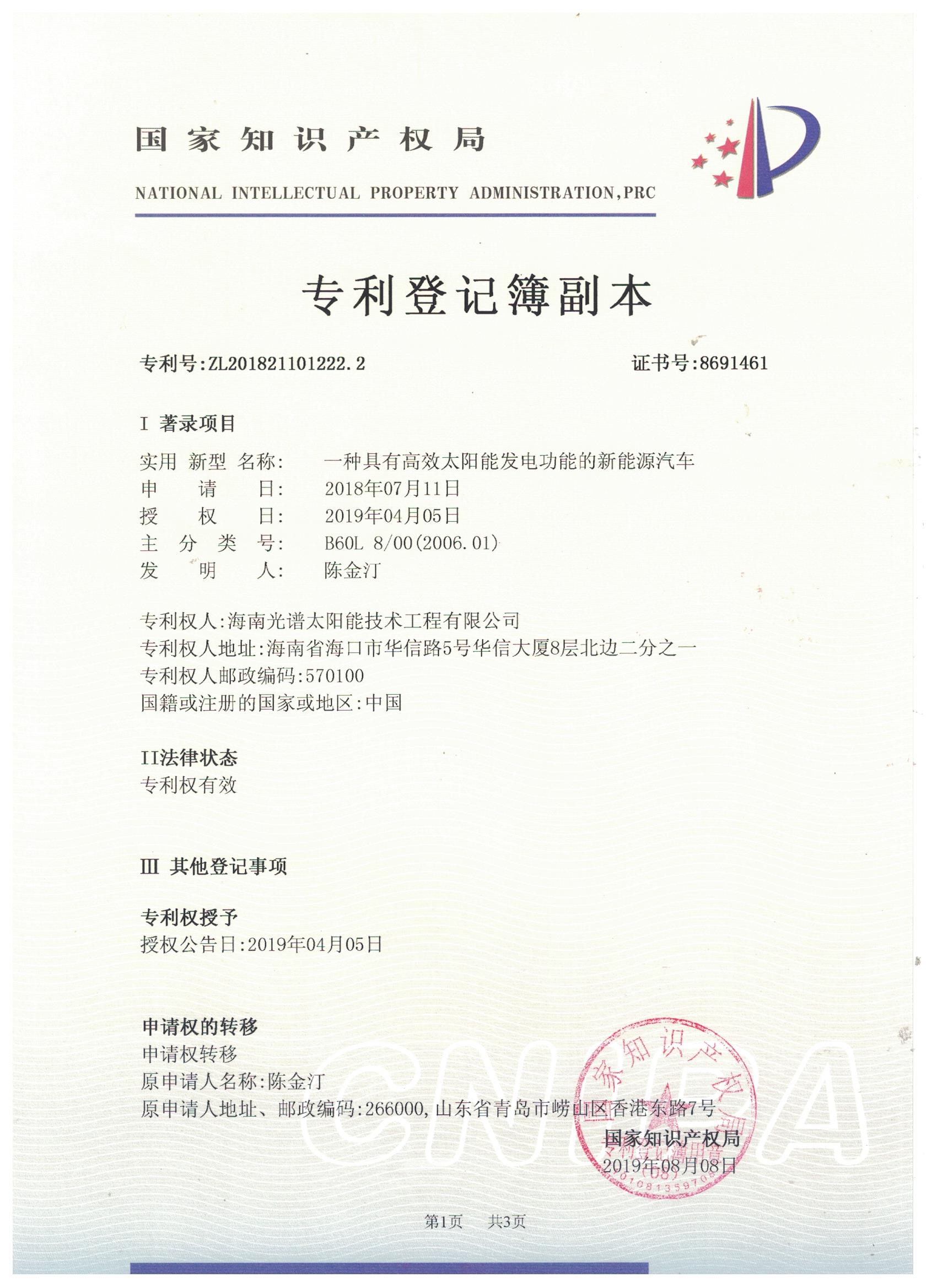 近日,我司申報的“一種太陽能熱泵蒸汽發生裝置”發明專利通過審查,獲得國家知識產權局授予的發明專利證書,授權專利號為“ZL201911126309.4”。 此次獲得國家頒發的專利證書,是對海南光譜公司創新實力的認可,代表著我司知識產權取得了突破性進展,為公司的持續性發展提供強有力的科技創...